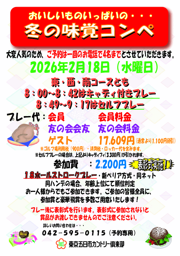 また、2026年度のコンペより ご予約は1回のお電話で4名までとさせていただきます。